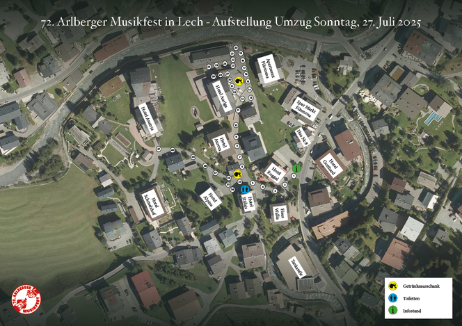 Für gekühlte Getränke und Müllsammelstellen wird gesorgt, ebenso ist im Aufstellungsbereich ein WC-Container positioniert. Auf dem Weg vom Festzelt zum Aufstellungsplatz befinden sich ebenfalls öffentliche WC-Anlagen beim neuen Gemeindezentrum und am Rüfiplatz. Wir möchten euch bitten eure Notdurft in diesen WC-Anlagen zu verrichten und nicht in den Gärten rund um die Aufstellungsplätze am Omesberg! Wir und die Anrainer werden es euch danken! ;-)